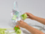 My daughter and I set about choosing material for her arrangement, as well as something that would fit inside the paper lantern to hold water. After much trial and error, we found a small glass bottle. She filled the glass bottle with water and placed it inside the paper lantern.